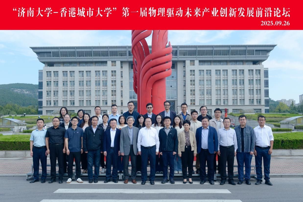 金秋九月,硕果盈枝。9月26日上午,“济南大学-香港城市大学”第一届物理驱动未来产业创新发展前沿论坛在第五学术报告厅举办。活动前,校长刘宗明会见了香港城市大学任洋教授一行。学校党委副书记商华,党委常委、统战部部长徐庆国出席会议。材料科学与工程学院、机械工程学院、信息科学与工程学院、水利与环境学院及物理开元(中国)师生代表参加论坛,九章(济南)量子科技有限公司总经理徐佳敏应邀出席。论坛由物理开元(中国)院长徐锡金主持。