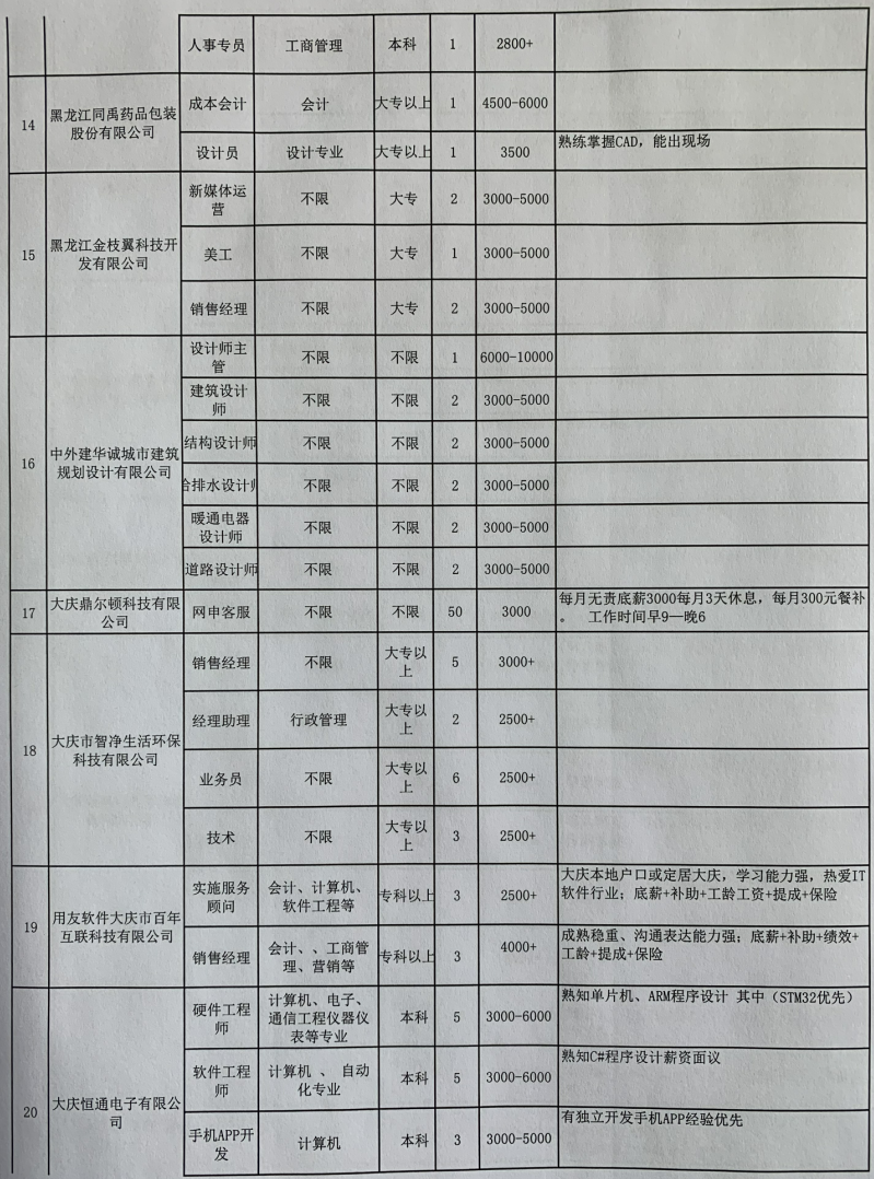 大庆高新技术产业开发区重点企业专场招聘